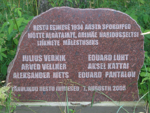 1928. aastal skulptor Aleksander Elleri loodud ausamba kiskusid kohalikud punased 1940. aasta 20. septembril aluselt maha ja lükkasid kõrgelt kaldalt jõkke, kust see aga koolipoiste poolt välja tõmmati ja maasse peideti. Sammas pidi taasavatama 1943. aastal, ent läks segastel aegadel kaotsi. Kuju taastati 1990. aasta Võidupühal.